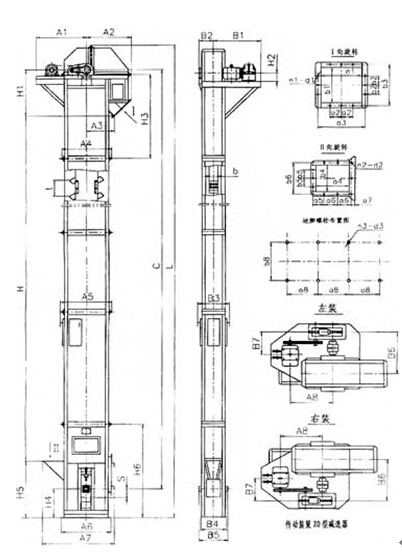 TD型皮帶式斗式提升機(jī)外形圖: